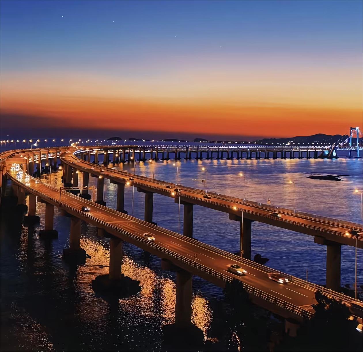 大连:暮色跨海大桥
