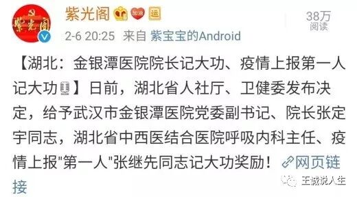 上面这篇报道的标题就给李文亮贴上了“吹哨人”(Whistleblower)的标签。但是外媒把李文亮贴上“吹哨人”的标签,并不符合事实。昨天湖北地方政府给予了武汉金银潭医院院长张定宇、湖北省中西医结合医院呼吸内科主任、疫情上报“第一人”张继先同志记大功的奖励!