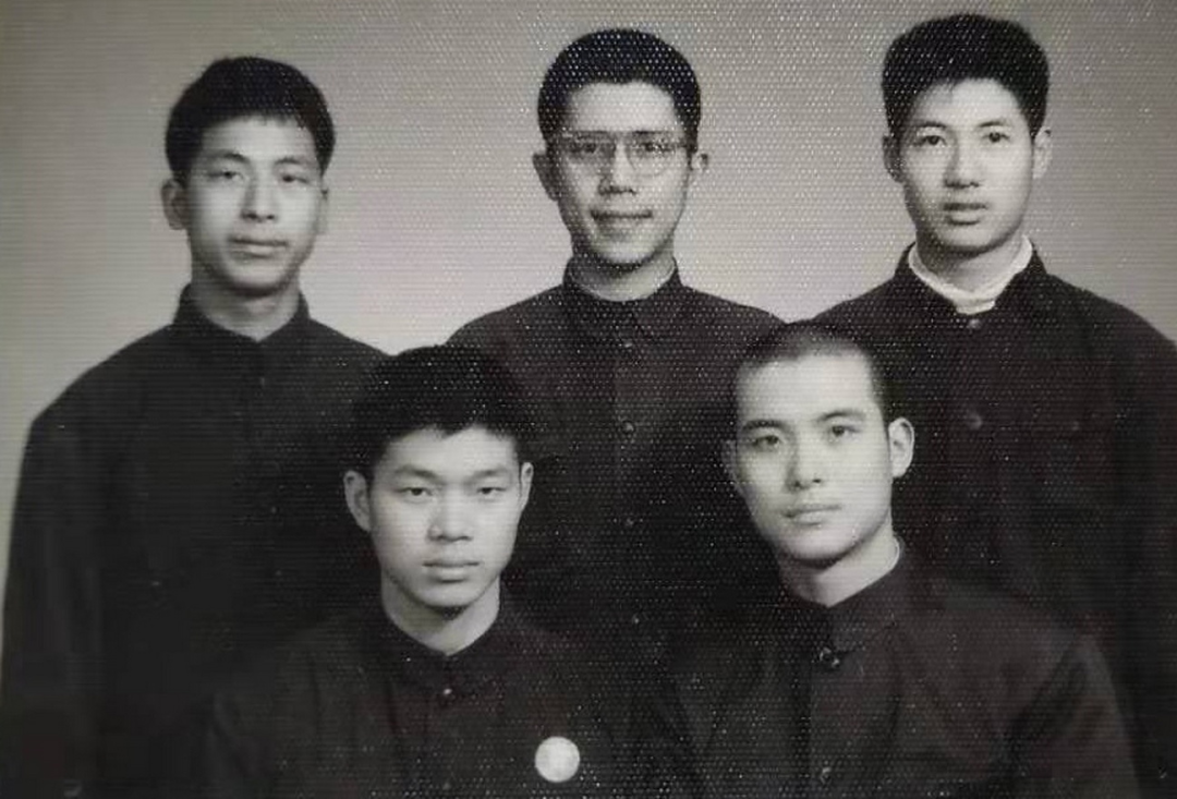 铁哥们同学毕业前的合影,自左向右依次为郑润中67(6)、夏青68(1)、王念同67(6)、黄晓河68(5)、作者68(6)