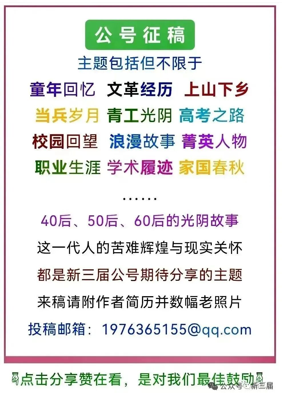 今年是文革发动六十周年、上山下乡开始五十八周年、恢复高考四十九周年,今天那些宏大的运动带来的伤害后遗症已慢慢消失和将被人遗忘了,当年意气风发的一代青年被时代反复推搡,都已垂垂老矣,无论你青春无悔、知青万岁还是后发制人安享晚年,老三届新三届们也已成为或即将成为过去式了,再过若干年这一切都将船过水无痕,淹没在历史的长河中。