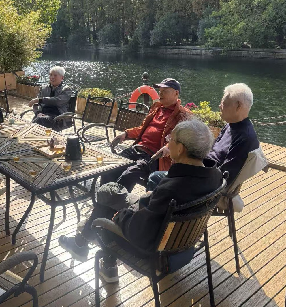 2025年11月,老叶(左二)与作者(左一)等老同学聚会华东师大丽娃河畔
